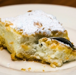 Ohlajeno pecivo potrosimo s sladkorjem v prahu, narežemo na kose in postrežemo.