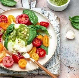 KUHINJA.COM | Paradižnikova solata s pestom in burrato ...