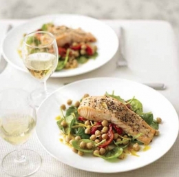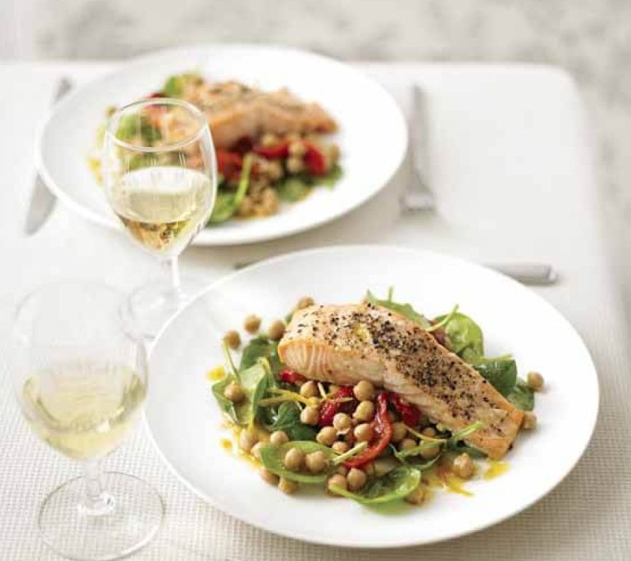KUHINJA.COM | Losos na topli čičerki s pečeno papriko in špinačo ...