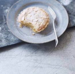 naribana lupina 2 limon 100 g masla na sobni temperaturi 100 g kristalnega sladkorja 2 veliki jajci 80 g mletih mandljev 30 g moke 6 žlic limonove marmelade 30 g mandljevih lističev sladkor v prahu za posip