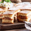 Pečeno pecivo ohladimo na sobno temperaturo. Ohlajeno potrosimo s sladkorjem v prahu, narežemo na kose in postrežemo.