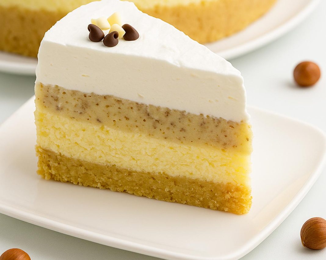 Ko zmanjka časa za peko, je ta sladica idealna rešitev. Pripravljena je v vsega dvajsetih minutah, brez pečenja in brez zapletenih postopkov. Osnova je nežna pudingova krema, razdeljena na tri okuse – piškoti, kokos in lešniki. Rezultat je čudovit slojevit kolač, ki navduši vsakogar, tudi ko se nenapovedano pojavijo gostje.