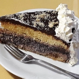 Nato čez ohlajen prvi nadev prelijemo makov nadev. Makov nadev pripravimo iz pudinga ter dodamo 100 g mletega maka.