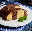 V podolgovatem rebrastem pekaču za srnin hrbet bomo spekli dva biskvita – svetlega in temnega.