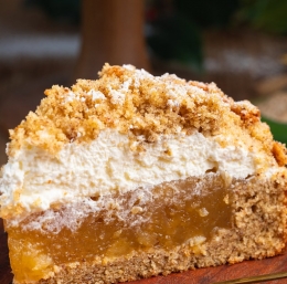 6. Nadrobljen biskvit, ki je ostal od izkopa, posujte po kupoli in ga narahlo vtisnite v smetano.