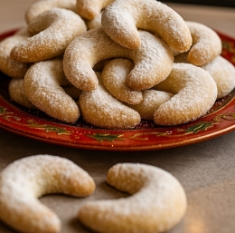 | Vaniljevi kifeljčki so tisti piškoti, ki jih povezujemo z domačnostjo, prazniki in toplino. Njihova nežna struktura, maslen okus in bogata aroma mandljev ustvarijo popolno ravnovesje, zaradi katerega se vedno znova vračamo k temu receptu. So preprosti za pripravo, a okus je tako čudovit, da jih pogosto poimenujemo kar glavni med prazničnimi piškoti.
