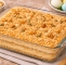 Zamrznjeno listnato testo pustite čez noč na sobni temperaturi, da se odtali. Vsako plast (skupno štiri) tanko razvaljajte, obrežite robove in položite na papir za peko. Po celotni površini jih prebodite z vilico. Vsako plast pecite pri 200 °C približno 20 minut. Eno pečeno plast nato z rokami zdrobite na drobne koščke – ta bo služila kot zaključni sloj.