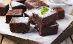 5 Pečemo približno 25 minut, da se na vrhu zapeče skorjica, sredina pod skorjico pa ostane še rahla in sočna (ko pekač potresemo, se plast pod skorjico zatrese). Pustimo pecivo v pekaču, da se popolnoma ohladi. Nato ga narežemo na kocke in posipamo s sladkorjem v prahu.