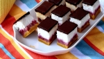Zmešamo z instant pšeničnim zdrobom (zdrobom) in premažemo po jajčno-biskvitni zmesi.