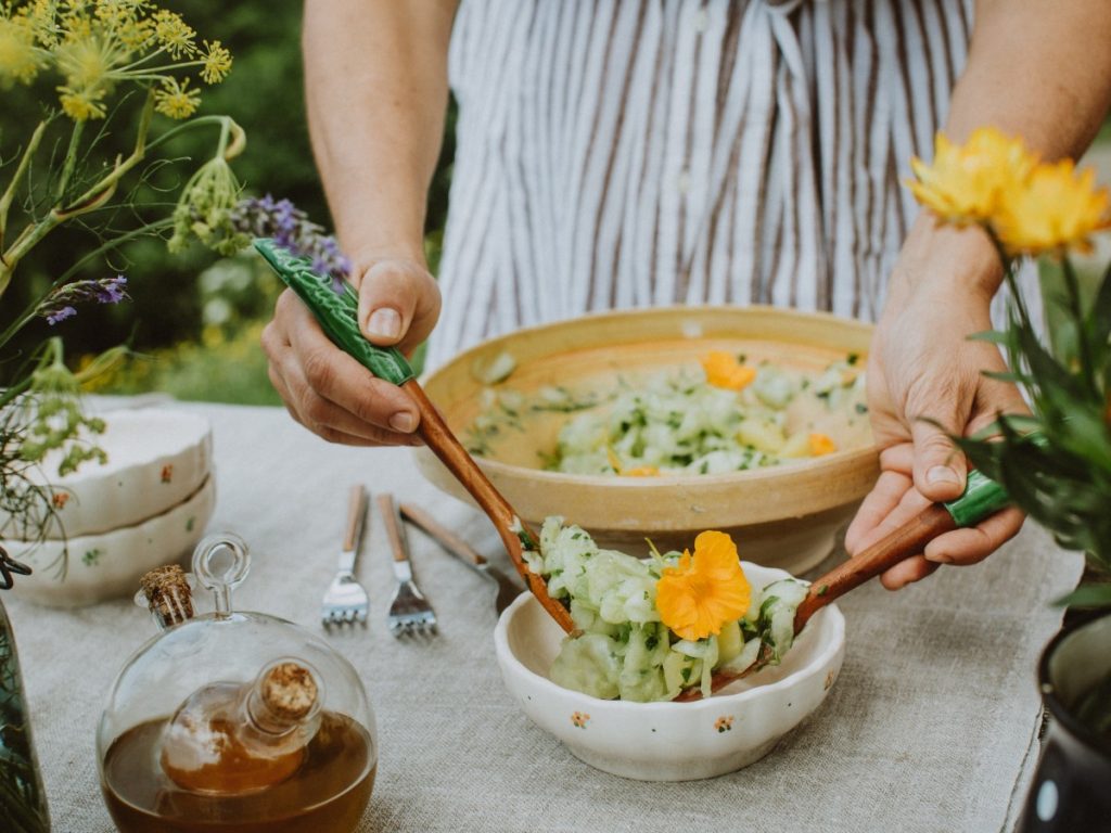 Na koncu primešamo še nasekljana zelišča in cvetove kapucinke.