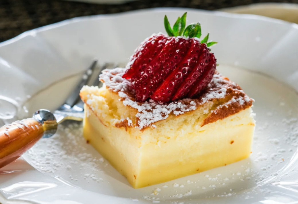 Preprosto troslojno pecivo, katerega priprava je tako enostavna, da ga boste želeli kar takoj poskusiti. Vse, kar morate narediti, je zgolj zmešati vse sestavine, pripravljeno maso vliti v pekač, potem pa pustiti, da pečica opravi svoje delo. Rezultat: biskvitna vrhnja plast, kremasta srednja plast in spodnja plast, ki je nekakšna mešanica obeh.