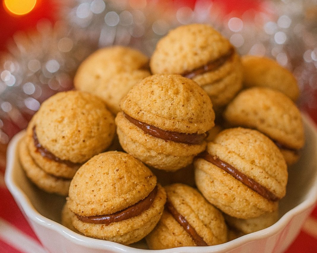 Masleni orehovi piškoti s čokoladnim polnilom so preprosta, a izjemno okusna praznična klasika, ki vedno očara z videzom in okusom.