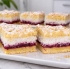 Na testo najprej položimo višnjev nadev, nato kokosov nadev in po vrhu naribano preostalo tretjino testa.