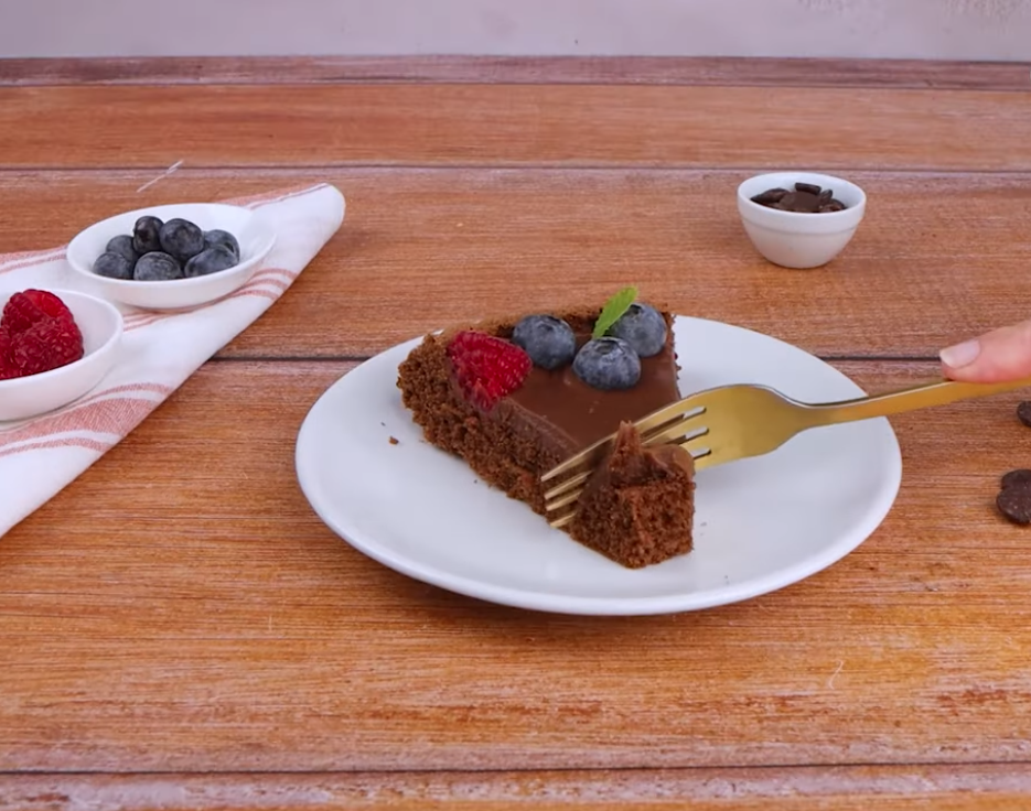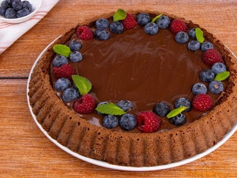 | Ta bogata in svilnata čokoladna pita s kremastim ganache prelivom in svežim jagodičevjem je prava poslastica za vse ljubitelje čokolade.