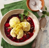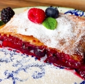 Zavitek z gozdnimi sadeži (malinami, borovnicami, robidami) in čokolešnikom