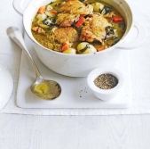Enolončnica s svinjino, jabolčnikom in topinamburjem