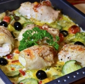Piščančje roladice z zelenjavo v kremni omaki
