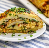 Krompirjeva rolada z mletim mesom, špinačo in sirom