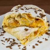 Zavitek z gozdnimi sadeži (malinami, borovnicami, robidami) in čokolešnikom