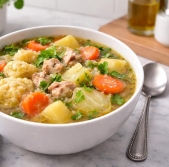 Njoki iz ponve z bobom, pršutom, rikoto in žajbljem