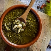 Njoki iz sladkega krompirja s pršutom in šparglji