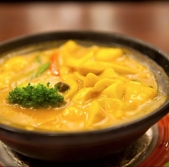 Pikantna juha laksa z rezanci, kozicami in karijem