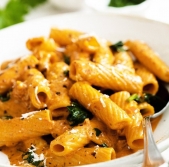 Makaroni v svilnati paradižnikovi omaki z vodko in špinačo