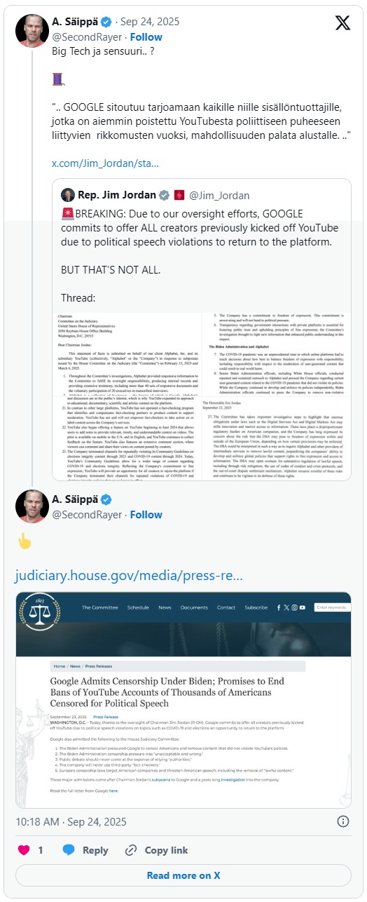 Z vrnitvijo Donalda Trumpa v Belo hišo se internet, kot smo rekli, vsaj navidezno vrača k nekoliko več svobode z druge strani luže. Google, matična družba YouTuba, je v pismu ameriškemu kongresu navedla, da se bodo vsi ustvarjalci vsebin, ki jim je bil med Bidenovo administracijo prepovedan dostop, lahko vrnili.