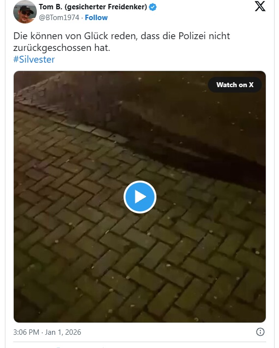 V odgovor levičarski Zeleni zdaj pozivajo k večjim prepovedim ognjemetov. Vendar je Berlin že razširil svoja območja izključitve, a je bilo še vedno na stotine aretacij in napadov. Tako kot območja brez nožev ne ustavijo napadov z noži, tudi prepovedi ognjemetov ne spremenijo naraščajočega nasilja. Problem ni v ognjemetih, temveč v ljudeh, ki smo jih množično spustili v Evropo. S seboj prinašajo običaje svojih matičnih držav, kjer so državljanska vojna, plemenski spori in ulično nasilje nekaj običajnega. Konflikti se tam rešujejo z nasiljem, ne z dialogom, ne z vladavino prava. Te razmere smo uvozili in zdaj žanjemo nasilje na naših ulicah.
