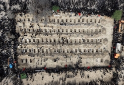 Udeleženci, oblečeni v črno in s fotografijami pokojnikov, so sledili pogrebni procesiji, ki se je premikala po glavnem mestnem trgu. Žalujoči so eno za drugo nosili krste in se od žalosti tolkli po prsih.